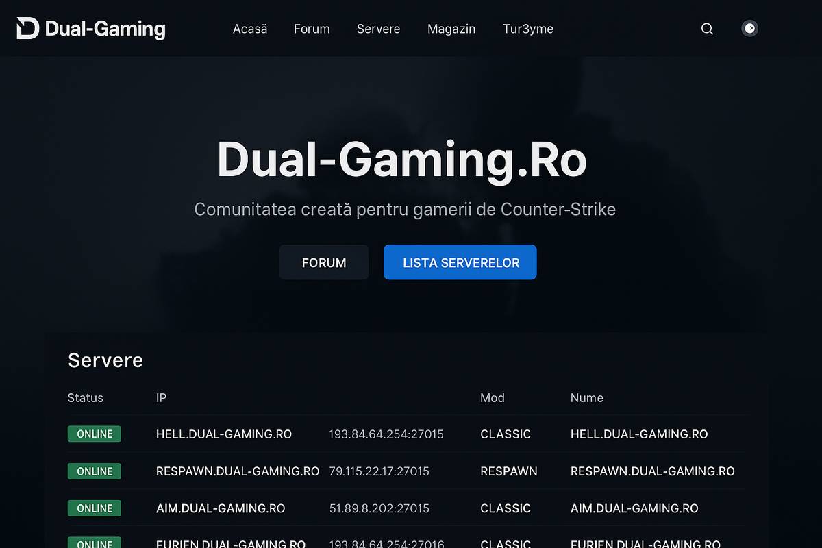 Despre: Dual-Gaming are mai multe servere listate public, moduri diferite pentru CS 1.6.